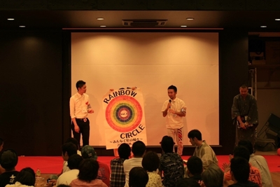2015年8月22日開催 【RAINBOW CIRCLE Vol.3】 音楽祭・交流会の二部構成で開催したこちらのイベント。 約70名の参加者の皆様と、出演者8組30名、スタッフ16名の盛大なイベントになりました。 交流会では親睦の為のサイコロゲームをはじめ、 協賛企業様からご提供いただいたカラフルなアイテムを求め、グループ対抗ゲームも行いました。 |